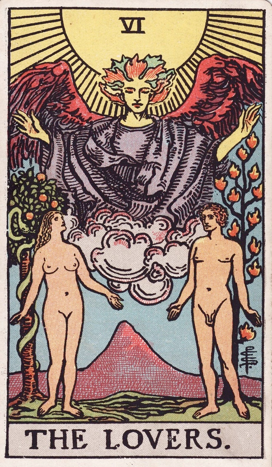 The Lovers card in the Smith-Waite tarot deck depicts this relationship between feminine, masculine, and spirit.